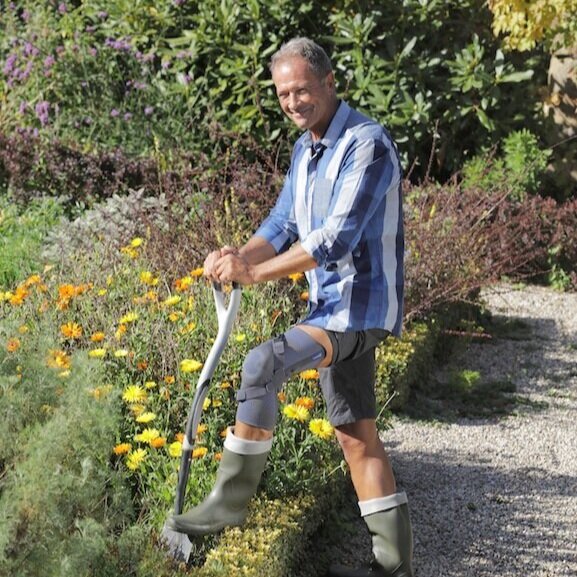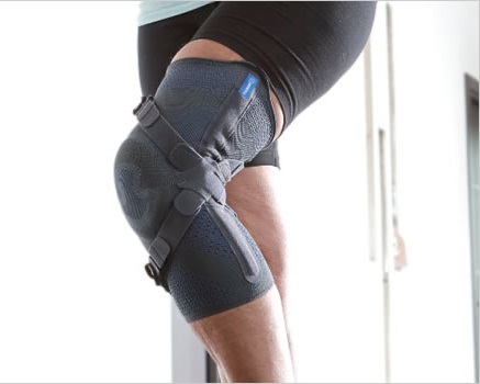 has a rigid stay, with a TM5 Hinge, on the injured side and a flexible stay on the healthy side, along with a patellar silicone insert, for full stabilization of the whole joint